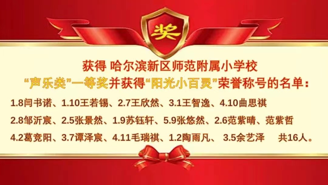 閆書諾同學的班主任馬男老師很重視孩子們的全面發(fā)展,鼓勵孩子們積極參加各種文體活動。在馬老師的積極引導下,閆書諾同學在學校藝術(shù)節(jié)的聲樂比賽中,以一曲《童心向黨》喜獲“聲樂類”一等獎和“陽光小百靈”榮譽稱號。