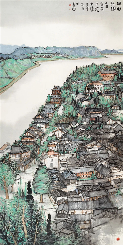 林容生 鄉(xiāng)村紀(jì)實(shí)·宜賓李莊古鎮(zhèn) 234cm×123cm 國(guó)畫(huà)