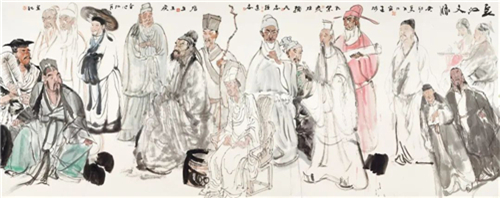 張江舟、紀(jì)連彬、孔紫、李曉柱、李乃宙、王輔民、盧志強(qiáng)、李連志、王瑛、張培生 長(zhǎng)江文脈 145cm×365cm 國(guó)畫(huà)