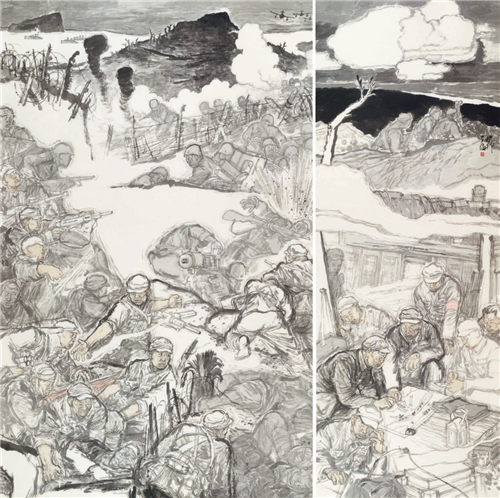 鄭天倫 渡江戰(zhàn)役第一槍 245cm×240cm 國(guó)畫(huà)