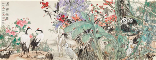 于文江、賈廣健、姚大伍、陳鵬、李乃宙、郭子良 美好家園 145cm×365cm 國(guó)畫(huà)