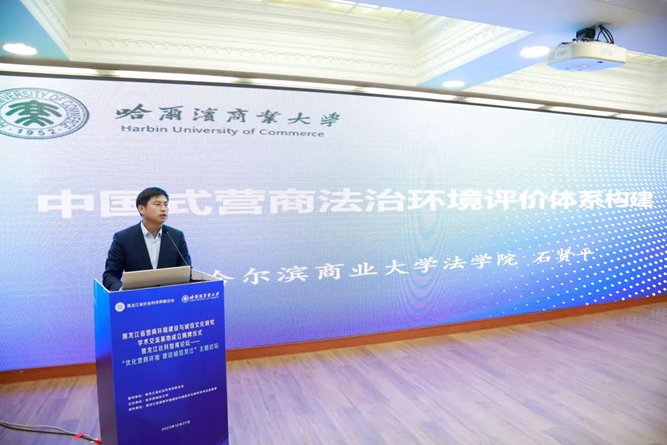 哈爾濱商業(yè)大學(xué)法學(xué)院副院長(zhǎng)石賢平教授以《中國(guó)式營(yíng)商法治環(huán)境評(píng)價(jià)體系構(gòu)建》為題作主旨報(bào)告。