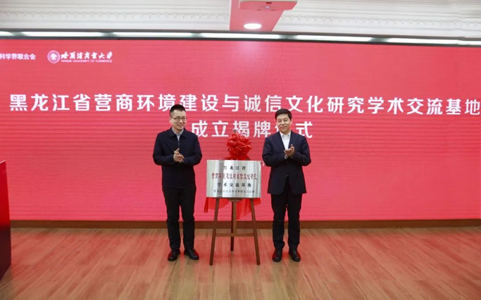 黑龍江省社會(huì)科學(xué)界聯(lián)合會(huì)黨組成員、副主席王宏宇與孫先民共同為“黑龍江省營(yíng)商環(huán)境建設(shè)與誠(chéng)信文化研究學(xué)術(shù)交流基地”揭牌。
