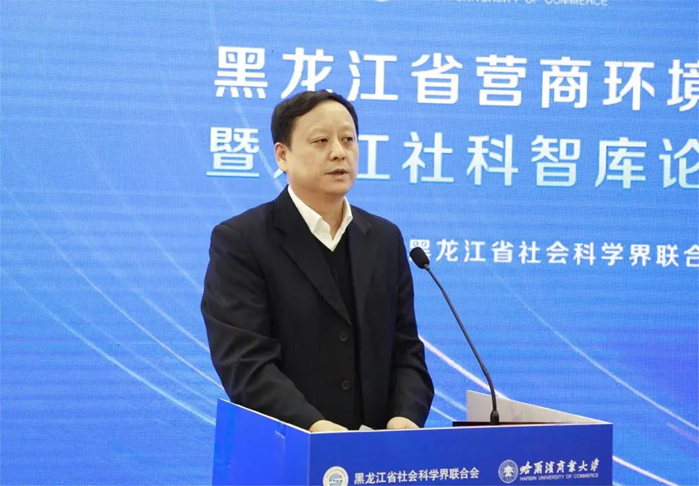 哈爾濱商業(yè)大學(xué)經(jīng)濟(jì)學(xué)院院長(zhǎng)韓平主持龍江社科智庫(kù)論壇——“優(yōu)化營(yíng)商環(huán)境 建設(shè)誠(chéng)信龍江”主題論壇。