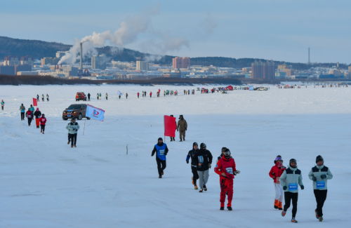 中國東極(撫遠(yuǎn)·黑瞎子島)冰上馬拉松賽已經(jīng)連續(xù)五屆在撫遠(yuǎn)市舉辦,憑借地域唯一性和極限挑戰(zhàn)性,成為全球五大冰上馬拉松之一,開創(chuàng)中國極限冰雪馬拉松運(yùn)動(dòng)的先河。本屆賽事由黑龍江省體育局、佳木斯市人民政府主辦,省政府黑瞎子島建設(shè)和管理委員會(huì)、撫遠(yuǎn)市人民政府承辦。中國奧委會(huì)副主席、中田協(xié)名譽(yù)主席段世杰前往比賽開幕式鳴槍。賽事設(shè)有全程馬拉松、半程馬拉松、新年歡樂跑三個(gè)項(xiàng)目。清晨7點(diǎn),撫遠(yuǎn)市的氣溫達(dá)到了零下23.3攝氏度,選手們紛紛帶上防風(fēng)面罩、保暖帽、手套、太陽鏡、防滑冰爪等應(yīng)對(duì)極端嚴(yán)寒環(huán)境下的特殊裝備,在全程42.195公里的冰賽道上,徒步穿越冰雪世界,體驗(yàn)當(dāng)?shù)鬲?dú)特冰雪文化和民俗風(fēng)情,品嘗賽道補(bǔ)給站提供的熱氣騰騰的鱘鰉魚鍋、鮮鯽魚湯等地方特色補(bǔ)給品,補(bǔ)充能量抵御嚴(yán)寒。