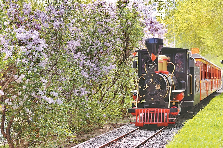 時下,哈爾濱市兒童公園內(nèi)丁香花盛開,香氣四溢,打滑梯、蕩秋千,許多市民帶著孩子前來游玩。剛剛投運的兒童小火車,載著“大朋友”、小朋友們在花海中穿行,伴著沁人心脾的花香,感受一份輕松愜意。