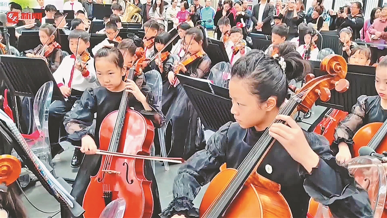 哈爾濱音樂(lè)學(xué)院少年交響樂(lè)團(tuán)演繹了多首經(jīng)典曲目。弦樂(lè)團(tuán)合奏《水門橋》和《春天在哪里》旋律優(yōu)美,帶領(lǐng)圍觀群眾穿越四季,感受大自然的美好;管樂(lè)打擊樂(lè)團(tuán)合奏的《龍的傳人》《波基上?!贰都t犬》和《熱火打擊樂(lè)》激昂熱烈,展現(xiàn)了少年們的活力與激情。