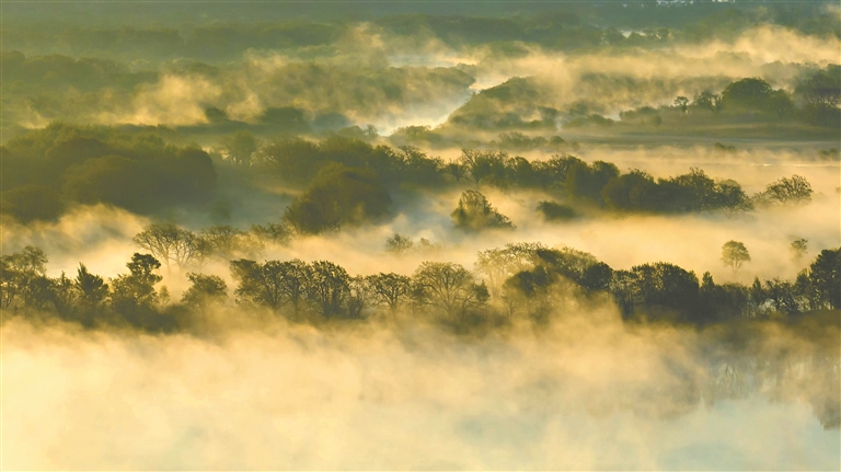 烏蘇里江饒河段晨霧中樹(shù)影迷離。戰(zhàn)志遠(yuǎn)攝