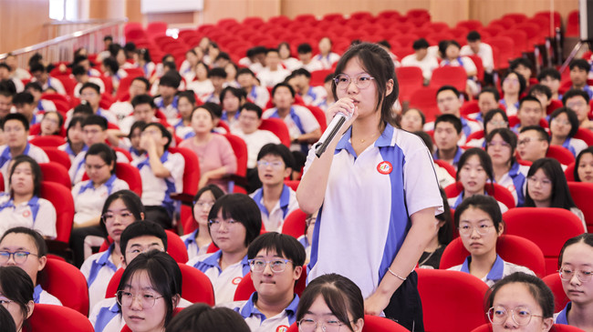 泰來一中學(xué)生在現(xiàn)場(chǎng)向北京大學(xué)學(xué)子提問