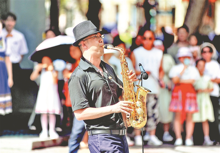 日前,哈爾濱市道里區(qū)中央大街與紅專街交口處,多位藝術(shù)家現(xiàn)場為人們表演,吸引許多游客圍觀。琵琶、薩克斯、手風琴等樂器演奏的經(jīng)典樂曲,博得人們陣陣掌聲。美妙的旋律回蕩在街道上空,為百年老街增添了更多的藝術(shù)魅力。