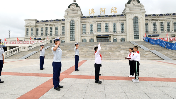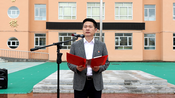 在國(guó)旗下,漠河市邊境檢查站代表陳澤和“全區(qū)十佳駐村干部”王成龍用自己生動(dòng)的故事為在場(chǎng)的每位少先隊(duì)員們上了一堂生動(dòng)的國(guó)防教育課,漠河市的少先隊(duì)員代表王涵在國(guó)旗下表達(dá)了對(duì)祖國(guó)的熱愛和對(duì)戍邊工作者們的敬佩。團(tuán)省委副書記陳海萍在講話中鼓勵(lì)少先隊(duì)員要學(xué)習(xí)漠河戍邊工作者們的堅(jiān)韌不拔和無(wú)私奉獻(xiàn),要立足祖國(guó)最北方志存高遠(yuǎn)、勤奮學(xué)習(xí)、錘煉品德、強(qiáng)健體魄,敢于創(chuàng)新、富于創(chuàng)意、樂(lè)于創(chuàng)造,要沿著“入隊(duì)、入團(tuán)、入黨”的“人生三部曲”奮力前進(jìn),為推進(jìn)中國(guó)式現(xiàn)代化、實(shí)現(xiàn)強(qiáng)國(guó)復(fù)興偉業(yè)貢獻(xiàn)青春力量。