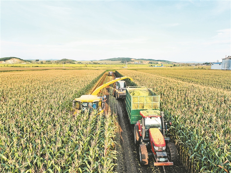 青貯玉米是八五一一農(nóng)場有限公司2.4萬頭奶牛越冬的重要口糧。經(jīng)過切碎、加工后,發(fā)酵制作成青貯飼料的玉米干物質(zhì)淀粉含量高、營養(yǎng)好,是公認的優(yōu)質(zhì)飼料。青貯玉米既為奶牛提供了優(yōu)質(zhì)口糧,又減少了因焚燒玉米秸稈帶來的環(huán)境污染,為各牧場增收奠定了基礎(chǔ),更實現(xiàn)了畜牧業(yè)綠色低碳高質(zhì)量發(fā)展。