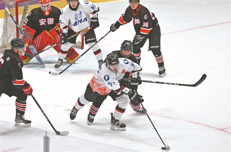 激烈的冰球比賽。本報記者 郭俊峰攝