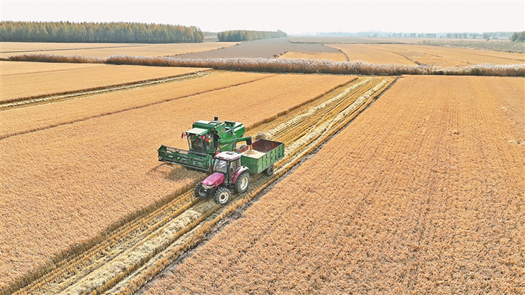 秋風(fēng)送爽,東極大地盡是豐收美景。稻田里,金黃色的波浪翻滾,預(yù)示著又一個糧食滿倉的好年景。