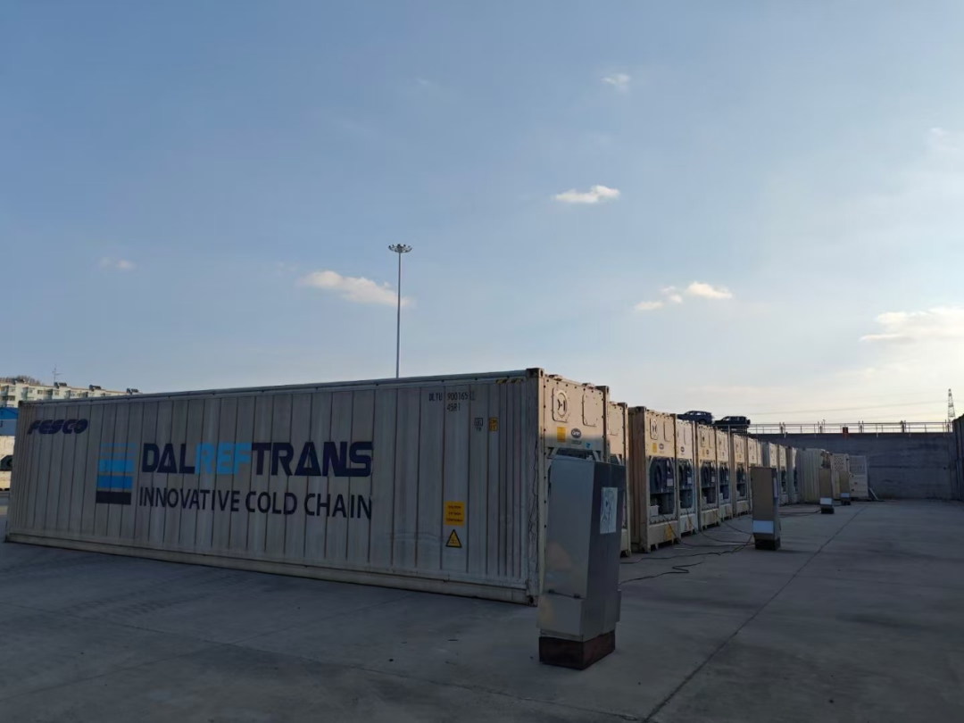 16個(gè)裝載進(jìn)口肉類產(chǎn)品的冷凍集裝箱集結(jié)