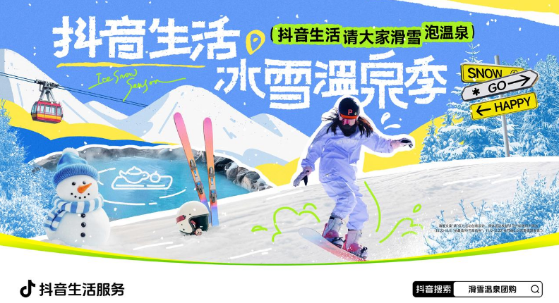 隨著全國各地降溫,“冰雪經(jīng)濟(jì)”逐漸升溫。10月22日至12月22日,抖音生活服務(wù)發(fā)起“抖音生活冰雪溫泉季”活動,重點(diǎn)圍繞哈爾濱、長春、沈陽等城市,聯(lián)動政府、明星達(dá)人、商家線上推介當(dāng)?shù)囟疚穆觅Y源,聚合物美價優(yōu)的冬季吃喝玩樂商品;線下打造雪人城市生活圈、抖音生活市集等,吸引用戶出游打卡,激發(fā)冰雪消費(fèi)熱情,助力冰雪城市出圈。