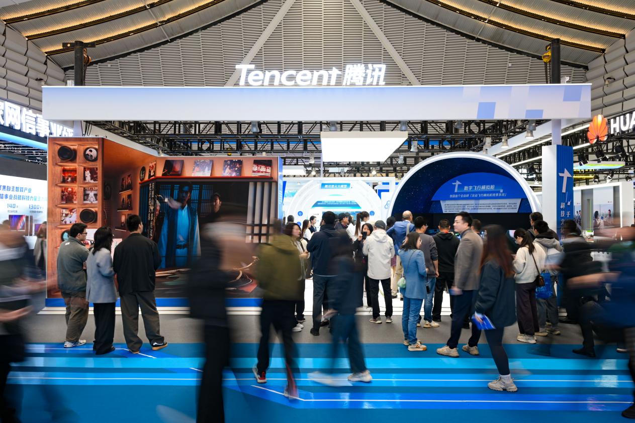 今年“互聯(lián)網(wǎng)之光”博覽會(huì)以人工智能為重點(diǎn),全方位展示中外數(shù)字經(jīng)濟(jì)領(lǐng)域新技術(shù)新業(yè)態(tài)新模式。騰訊展區(qū)的“C位”,是由騰訊混元大模型及元寶、元器構(gòu)成的AI互動(dòng)展區(qū)。