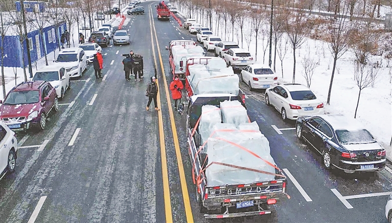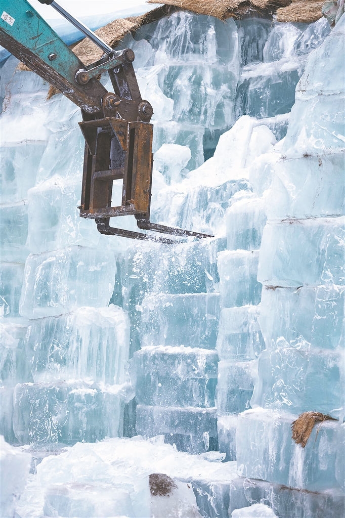 為保證冰建景觀的“高顏值”,這些存冰在啟用后,要先送往驗冰場接受檢查,檢查冰體的厚度、長度、完整度和潔凈度,只有品相好、品質(zhì)佳并符合建筑要求標(biāo)準(zhǔn)的合格冰體,才能進(jìn)入園區(qū)用于景觀建設(shè)。