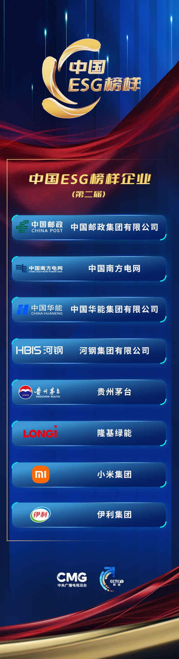 當天,中央廣播電視總臺財經節(jié)目中心聯(lián)合國務院國資委、全國工商聯(lián)、中國社科院國有經濟智庫、中國企業(yè)改革與發(fā)展研究會等權威機構舉辦了《第二屆“ESG榜樣”盛典》,這8家企業(yè)均成功登榜“ESG榜樣企業(yè)”,成為ESG領域的新領軍者。