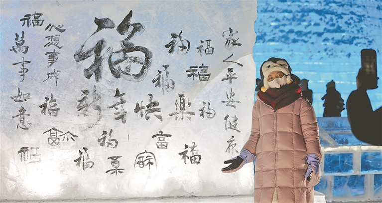 1月16日,為喜迎乙巳蛇年的到來(lái),哈爾濱冰雪大世界在園區(qū)打造一座許愿冰墻,上面寫(xiě)滿各種祝福,為新年增添喜氣。本報(bào)記者 張澍攝