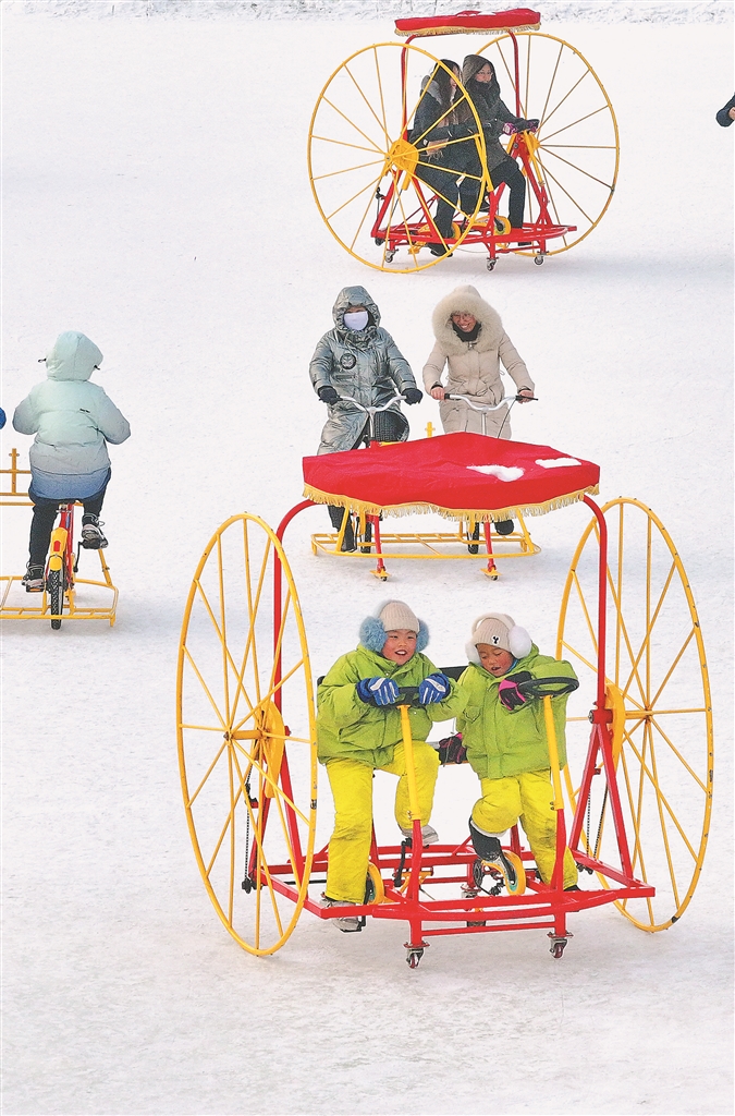 1月29日,大年初一,哈爾濱太陽島雪博會(huì)園區(qū),游人如織。孩子們?cè)诩议L(zhǎng)的帶領(lǐng)下,坐雪圈、騎冰上自行車,玩冰戲雪,歡樂融融。省博物館展廳內(nèi),懸掛了紅燈籠、紅條幅,許多市民、游客在參觀學(xué)習(xí),打卡拍照,體驗(yàn)傳統(tǒng)民俗。