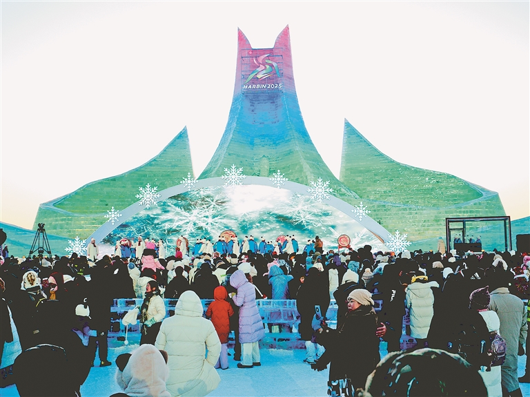 精美與靈動相互交織,園區(qū)內(nèi)亞冬會氛圍濃厚?!拔覀冊趫@區(qū)內(nèi)看到很多亞冬會元素的冰雪景觀,像雪雕‘濱濱’‘妮妮’、會徽大地景觀等,準(zhǔn)備逐個打卡。”山東游客許多開心地說。