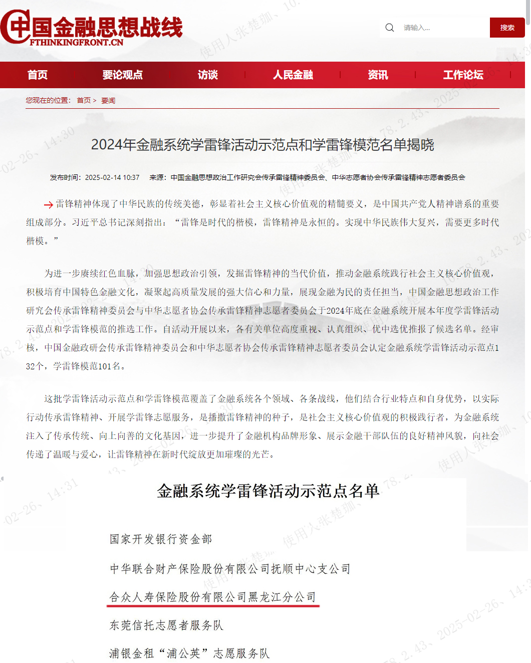 在2024年金融系統(tǒng)學雷鋒活動示范點和學雷鋒模范評選中,合眾人壽黑龍江分公司黨支部脫穎而出,成功獲評學雷鋒示范點,成為合眾全系統(tǒng)唯一獲此殊榮的單位。這一成績的取得,不僅是合眾人壽黑龍江分公司的榮耀,更是整個合眾系統(tǒng)的驕傲,為行業(yè)樹立了榜樣。