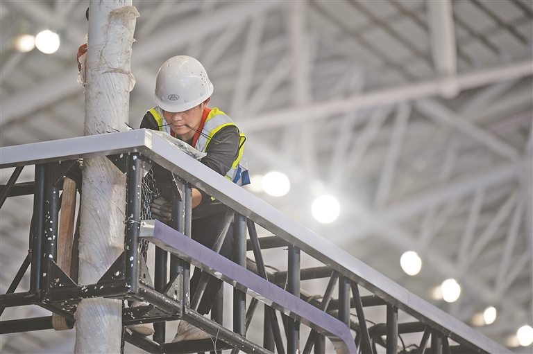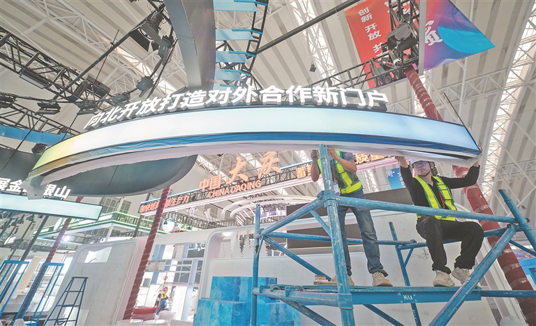 5月14日,距離哈洽會(huì)開幕還有三天時(shí)間,記者來到第34屆哈洽會(huì)展館施工現(xiàn)場,各區(qū)域展臺(tái)已搭建成型,施工工人們正在有條不紊地裝飾展區(qū)細(xì)節(jié)部分。