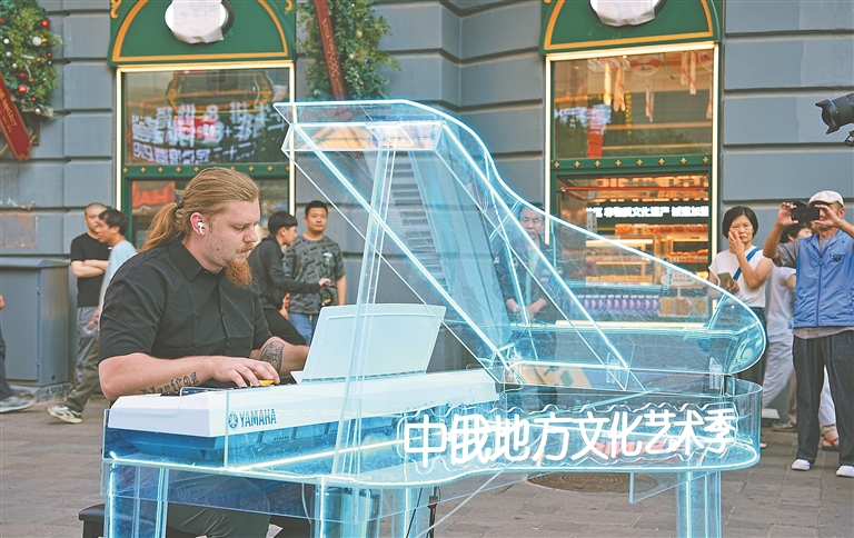 中央大街一隅,熱情洋溢的俄羅斯演員或奏響悠揚(yáng)的巴揚(yáng)樂曲,讓充滿異域風(fēng)情的旋律在空氣中流淌;或以靈動(dòng)的舞姿演繹俄羅斯文化,用熱情奔放的節(jié)奏點(diǎn)燃現(xiàn)場氣氛。市民和游客近距離感受俄羅斯文化的魅力。