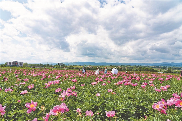 紫云嶺花海將自然美景與人文內(nèi)涵深度融合,游客賞花之余,還可通過(guò)景區(qū)設(shè)置的展板了解芍藥歷史,感受“以花傳情”的東方浪漫。圖為絢爛綻放的芍藥花。