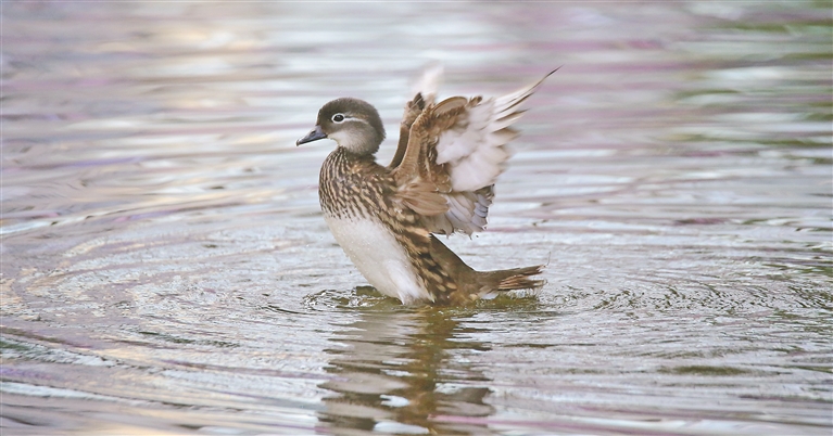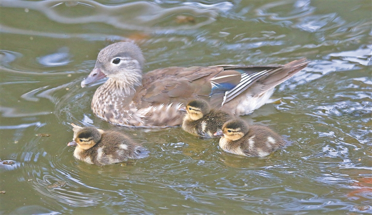 在兆麟公園的鴛鴦湖中,還生活著70只在城區(qū)其他地方出生后,自己跑來(lái)或是被愛心市民送來(lái)的小鴛鴦。如今,276只小家伙跟著媽媽在湖中四處游蕩、覓食,吸引不少外地游客駐足圍觀。