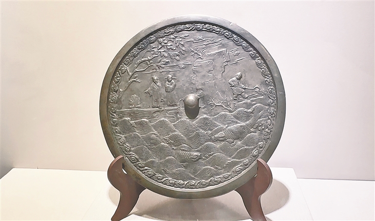 本次展出的距今已有千年歷史的“山水人物故事銅鏡”。本報(bào)記者 李淅攝