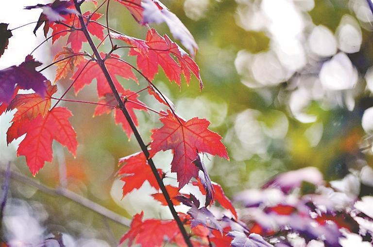 8日,寒露,二十四節(jié)氣中的第十七個(gè)節(jié)氣。在一些公園里,楓樹的葉子陸續(xù)變?yōu)榧t色,為秋季冰城再添了一道美景?;鸺t的楓葉吸引人們駐足觀賞拍照。