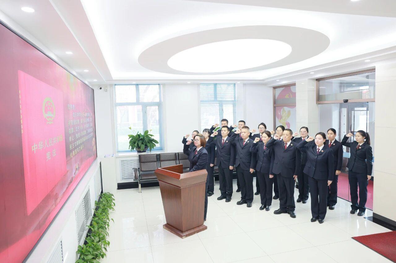 “我宣誓:忠于中華人民共和國(guó)憲法,維護(hù)憲法權(quán)威,履行法定職責(zé),忠于祖國(guó)、忠于人民……”在黨組書(shū)記、檢察長(zhǎng)趙麗葳帶領(lǐng)下,全體干警舉起右拳,目光堅(jiān)定,跟誦誓詞,鏗鏘有力的誓言,久久回響,激蕩人心。傳遞著檢察人員忠誠(chéng)履職盡責(zé)、維護(hù)公平正義的堅(jiān)毅決心,是初心使命的再宣誓,是接續(xù)奮斗的再出發(fā)。