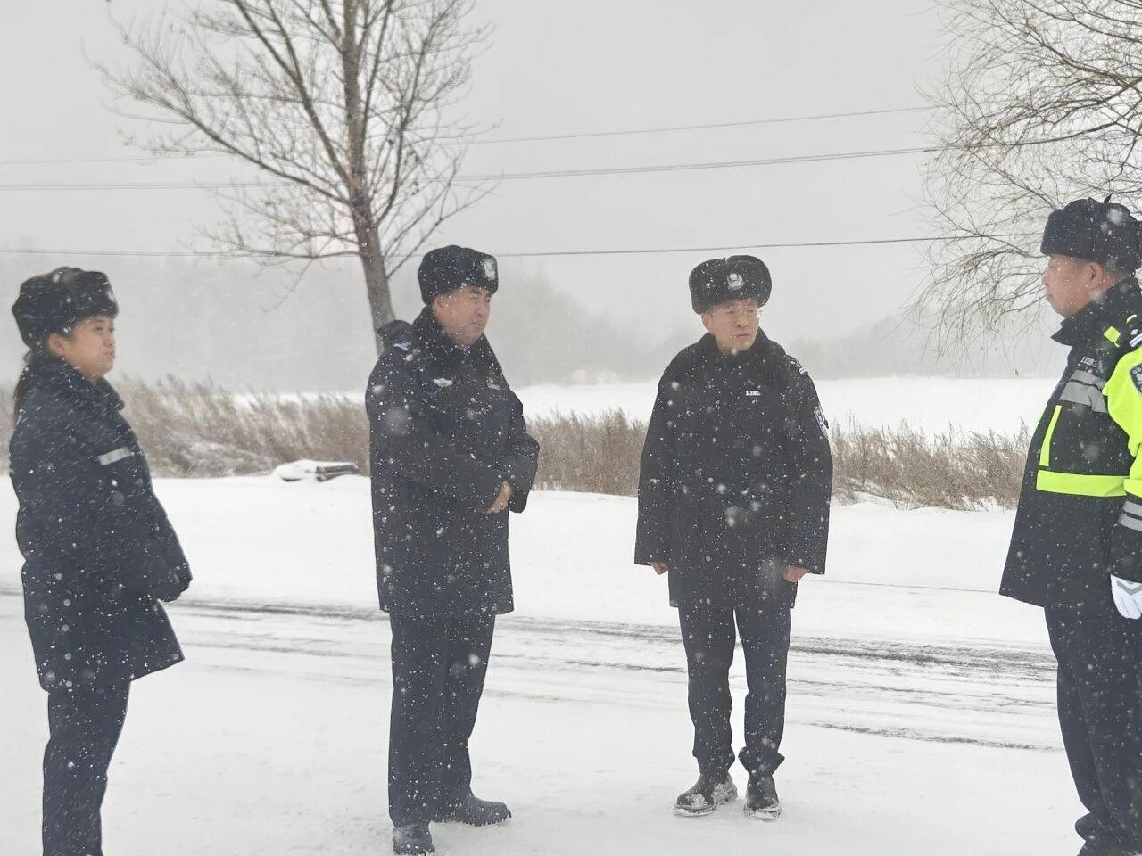 在各執(zhí)勤現(xiàn)場,王秀東一行詳細詢問警力部署、路面通行、交通疏導、應(yīng)急物資儲備及隱患整改等工作落實情況,對全體執(zhí)勤人員頂風雪、冒嚴寒堅守崗位的擔當精神給予充分肯定,同時反復叮囑大家做好自身防寒保暖和執(zhí)勤安全防護,切實保障自身安全。